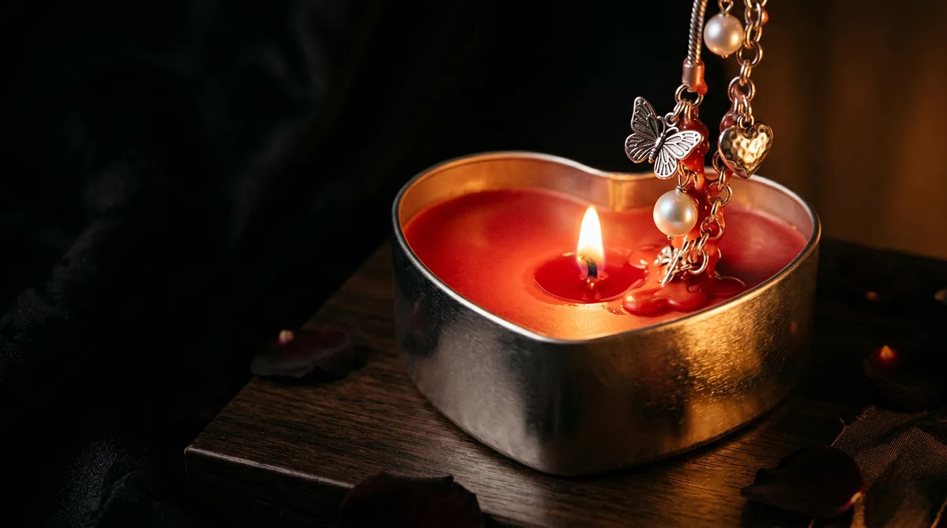 Immagina di essere sul divano. La candela è accesa da ore. La stanza profuma della fragranza che qualcuno ha scelto pensando a te. La luce oscilla sulle pareti. E sai che nella cera, qualcosa ti aspetta.
